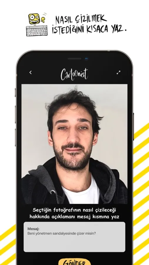 Yapmanız gereken fotoğrafınızı çekip, karikatürü nasıl istediğinizi açıklama kısmına yazıp göndermeniz. Karikatürünüz saatler içinde elinizde.