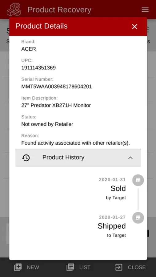 A suite of services designed to provide real-time information about products to retailers with a simple scan of serial number bar code.