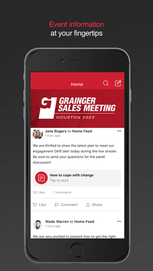 Mobile App for Grainger Events. Grainger believes in the power of connection, and this app allows us to bring our attendees together to share ideas, product innovations, and celebrate relationships.
