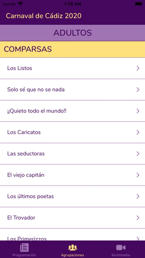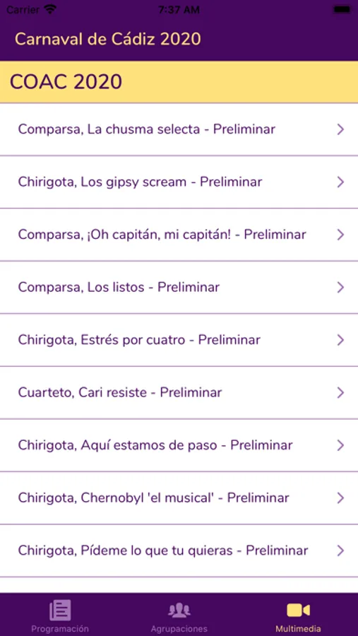 En esta app podras ver todas las agrupaciones participantes cada año en el COAC (Concurso Oficial de Agrupaciones del Carnaval). Disfruta de nuestra emeroteca y diviertete con todo el contenido que te ofrecemos.
