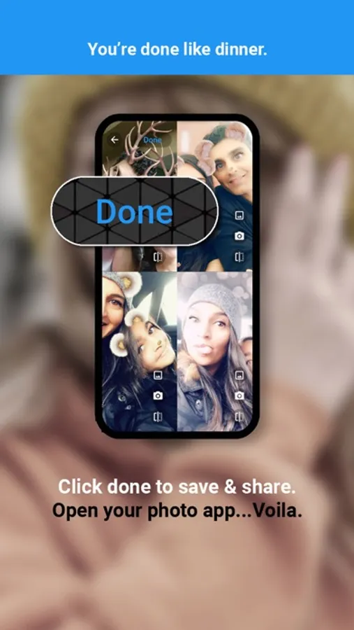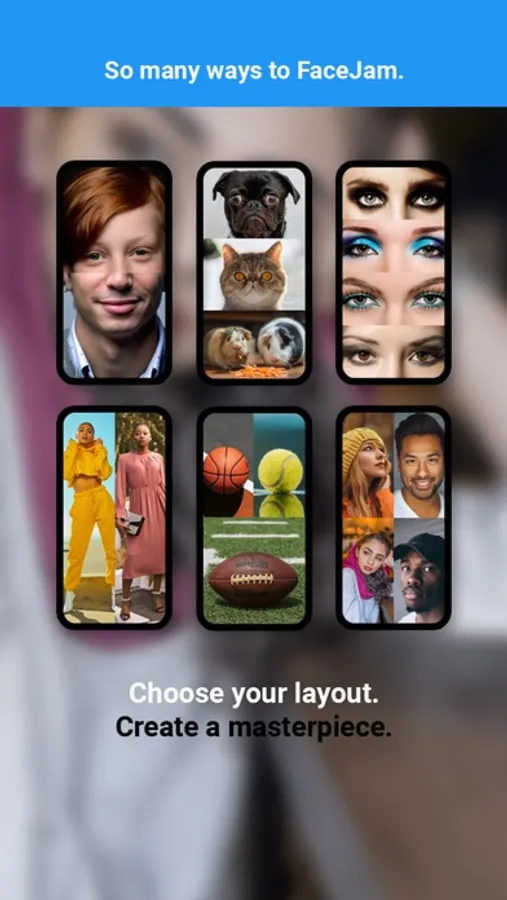 FaceJam is more than just a pretty face. Want to put 2, 3 or 4 pictures side by side or compare 2 things without having to switch screens? Wonder what you look like with a different haircut? Need to choose an outfit and ask friends for advice? With FaceJam, you can easily put pictures together. Use existing shots on your device or take new ones with the built in camera. Once you have created your masterpiece, save and share it with the world!