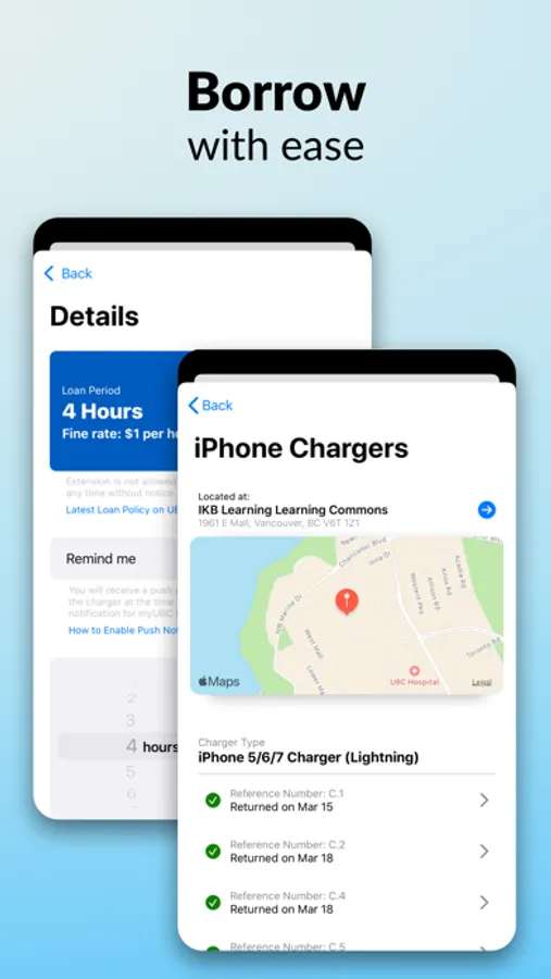 - Chargers: Don't let a dead laptop ruin your study session. Check out a charger for FREE at Irving K. Barber Learning Centre or David Lam Research Library using your UBC card. Set up a return reminder to avoid overdue fees - easy peasy!