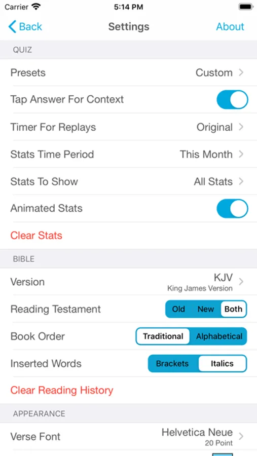 • Includes 14 Bible versions for quizzes and Bible reading mode