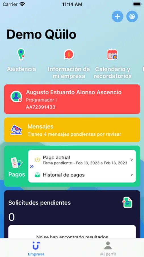 Revisa tus pagos mensuales en tiempo real, firma tus boletas de pago, envía sugerencias o solicitudes, pide vacaciones y marca tu asistencia.
