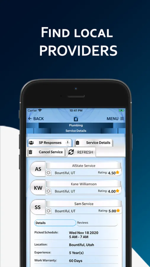 Customers are able to select the exact job they want done, put the exact time and date they want the work done, and choose their provider. Service providers are able to accept jobs they want to complete from a list of available jobs in their area and see exactly how much they will make for completing the job.