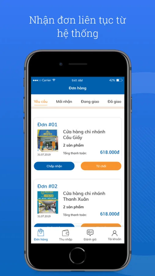 - Nhận và tiếp nhận đơn hàng thuộc các chi nhánh.