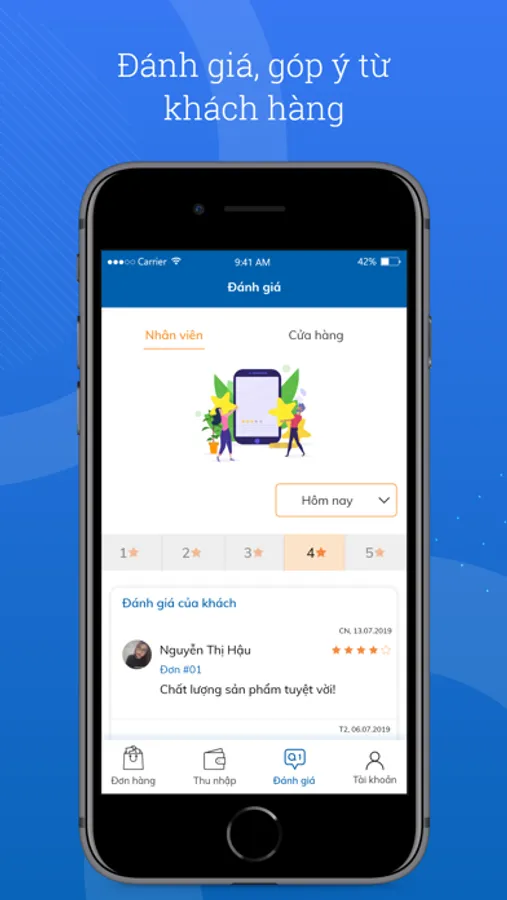 - Quản lý thu nhập trong ngày, tuần, tháng.