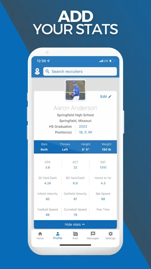 • Sign Up and Build Your Profile - Showcase your stats, playing experience, and highlights. Once your profile is created, your stats can be found by all our coaches, scouts, and recruiters.