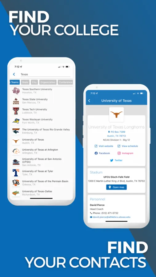 • Search and Connect - The Teams directory gives you access to every college and pro team in baseball. View team contacts, recruiting applications, social media pages, and team websites.