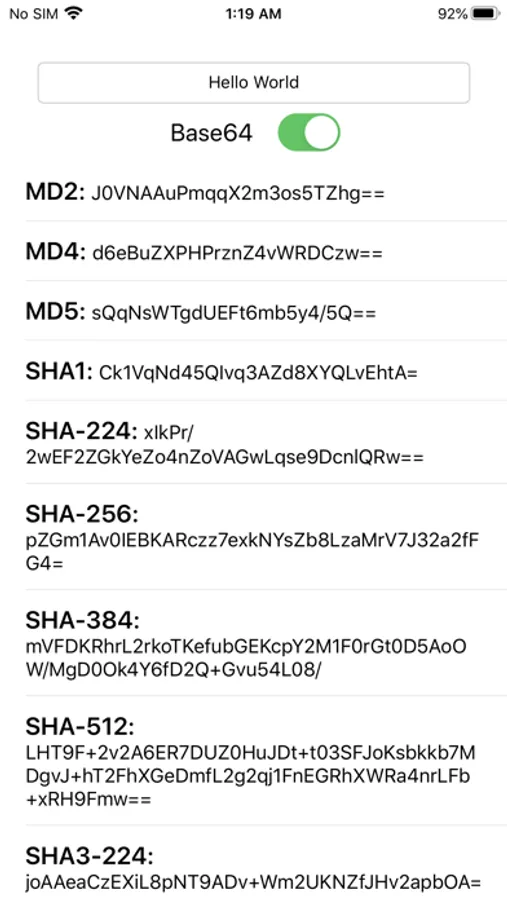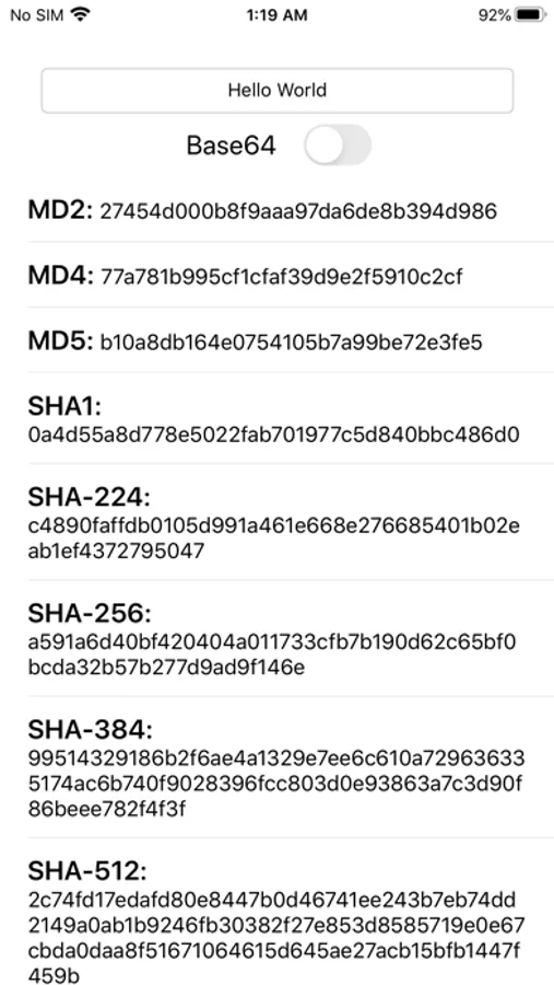 This app allows you to encrypt text into a hash function. This app is super simple to use. Simply type your text into the text field and it will update in real-time.