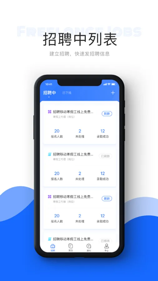 商家发布招聘信息,收到兼职者报名,选择合适录取上岗。