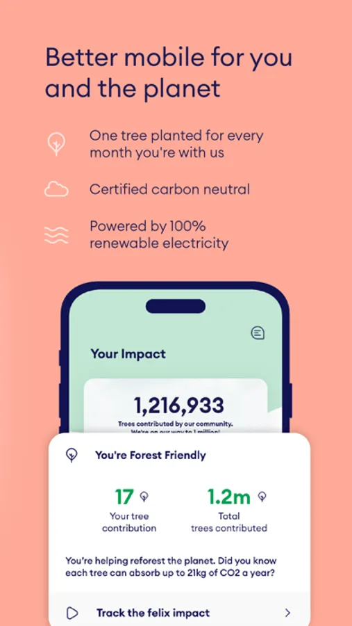 Join one of our no lock-in contract plans with one tree planted for every month you're with us. felix mobile is also certified carbon neutral, and powered by 100% renewable electricity.