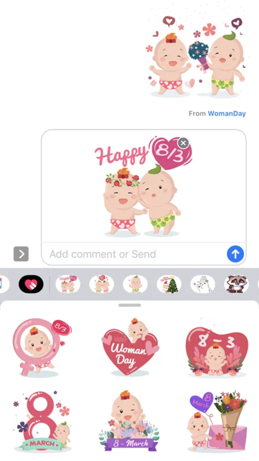 Woman Day BoKidTV Funny Sticker (ANIMATED) to help you make your chats in messengers even funnier with many subjects : gift, card and Valentine Greetings