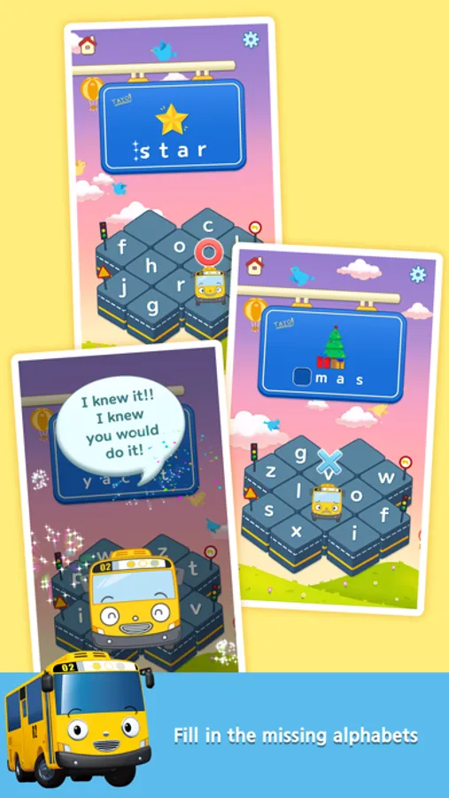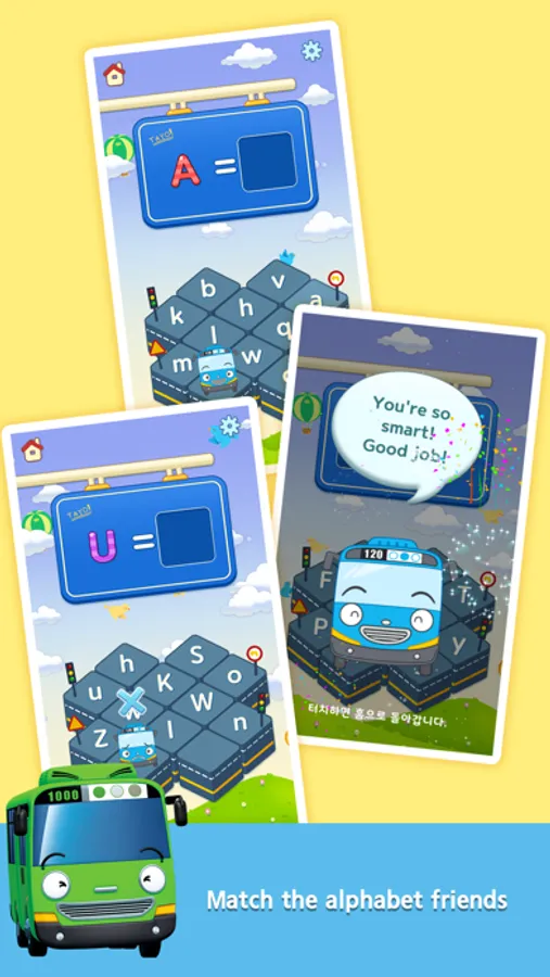[Tayo ABC] is an educational entertainment application designed to be fun and be able to learn the alphabet and basic words. You can improve your English, concentration, and be able to come up with ideas quickly.