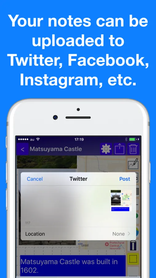 They can be uploaded as images to Twitter, Facebook, Google+, Instagram, Evernote, Flickr, Line, etc.