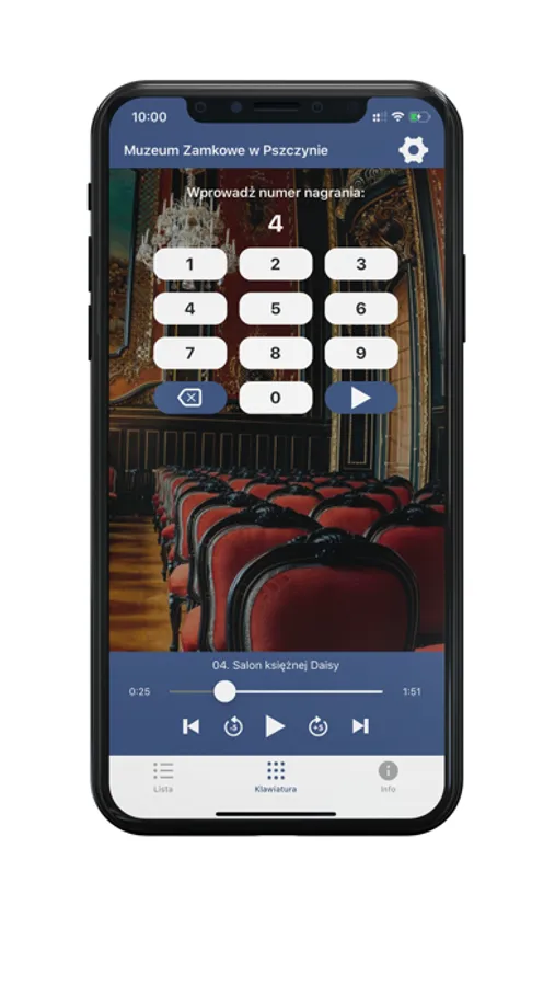 Aplikacja jest formą audioprzewodnika pozwalającego na zwiedzanie Muzeum Zamkowe w Pszczynie za pomocą urządzen mobilnych.