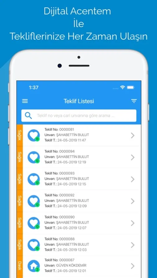 Tekliflere, Dijital Acentem Mobil uygulamasını cep telefonunuza/tabletinize yükleyerek, veya Dijital Acente Planlama Panelinden her zaman ulaşılabilirsiniz.