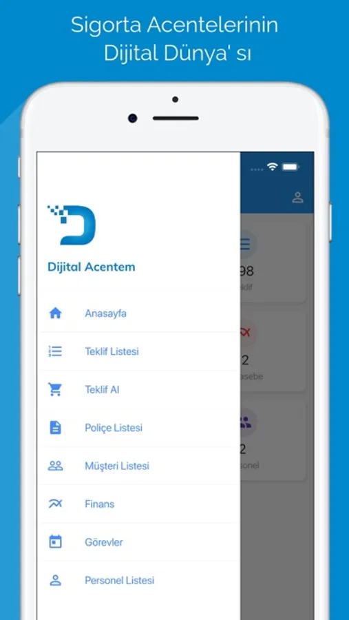 Ofiste yapmanız gerken işlerinizi arık cebinizden halledebilirsiniz. Dijital Acentem Mobil uygulaması ile ofisininiz cebinizde. dijitalacentem.com adresinden demo hesabı oluşturup