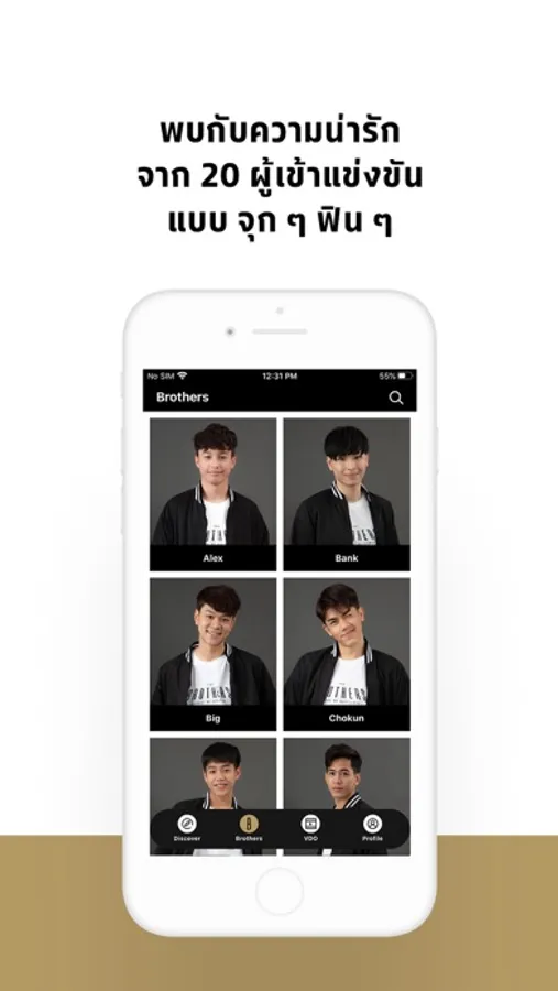 The Brothers Thailand แอพพลิเคชั่นที่จะทำให้คุณใกล้ชิด 20 สุภาพบุรุษไอดอลได้มากขึ้นเพียงปลายนิ้ว ไม่ว่าจะไกลแค่ไหน คุณก็สามารถรับชมคอนเทนต์จากเหล่าไอดอลชายหนุ่มได้ทุกที่ ให้คุณไม่พลาดทุกกิจกรรมจาก 20 ผู้เข้าแข่งขัน ดูไลฟ์ย้อนหลัง อัพเดทตารางงานหรือไฮไลท์ฟิน ๆ จากรุ่นพี่แห่งชาติทั้ง 4