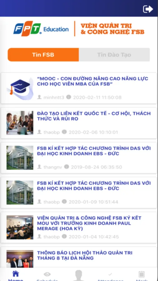 AP: Phần mềm quản lý Học viên, Lịch học, Điểm danh, Điểm, Tin tức, thông báo của Học Viên và FSB.