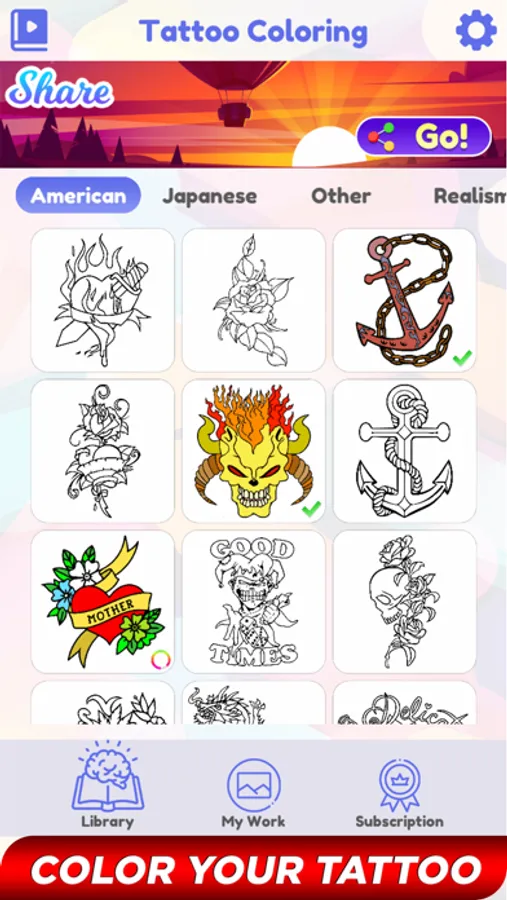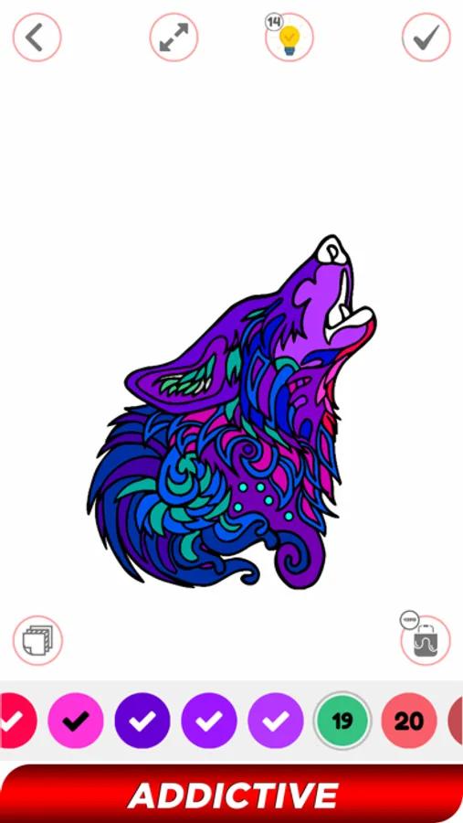 - Color your favorite themes like Patterns, Flowers, Sugar Skulls, and Dragons with solid or crayons.