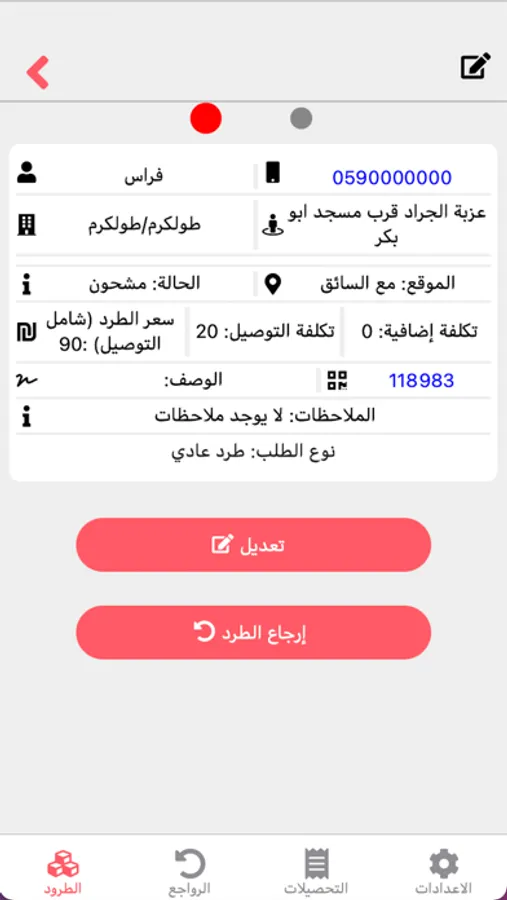 - You can change parcel info during delivery process (like phone number, price ..etc)