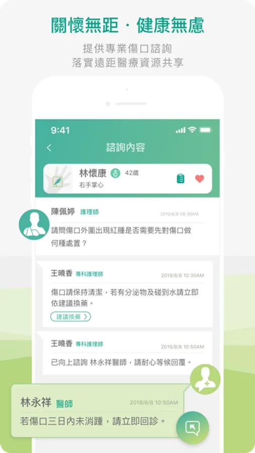 遠距傷口諮詢系統為恩主公醫院、居家及照護中心所使用的遠距傷口紀錄諮詢系統,提供醫護人員以一致性的照護觀念,紀錄傷口資訊,建立整合性服務。於醫院端,院內相關的醫師群及專科護理師,可經由此一系統平台的傷口資料庫查驗病患的傷口歷程。於照護中心遠距的傷口諮詢服務,照護中心的護理人員可藉由此系統與醫院的醫師及專科護理師保持雙向溝通聯繫或提供遠距照護傷口建議;相關醫師及傷口專家亦可經由此系統給予傷口諮詢照護的建議回覆。此外,對於出院後的病患回到家中後,也可以受到遠距傷口紀錄諮詢系統提供的DayPass居家照護服務,讓病患即使回到家中也可以享有傷口遠距諮詢的服務。