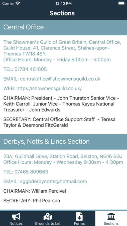 This app provides easy access to the very latest official Notices of the Showmen’s Guild of Great Britain and Northern Ireland, along with details of the national sections of the Guild and adverts for Grounds to Let.