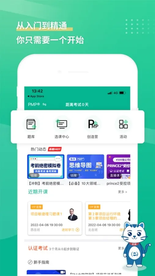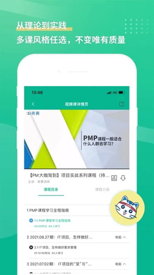 提供PMP/ACP/NPD的精品视频课程,支持免费试听,语速调节,离线下载等丰富的自助学习功能。