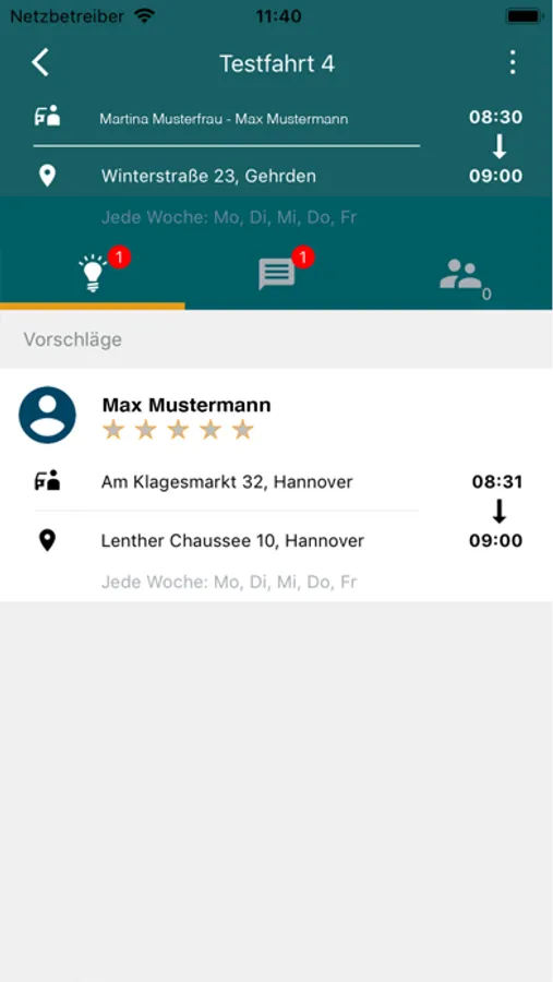 Ladet „UMA Mitfahren“ im Apple AppStore herunter, registriert euch und fahrt zusammen los.