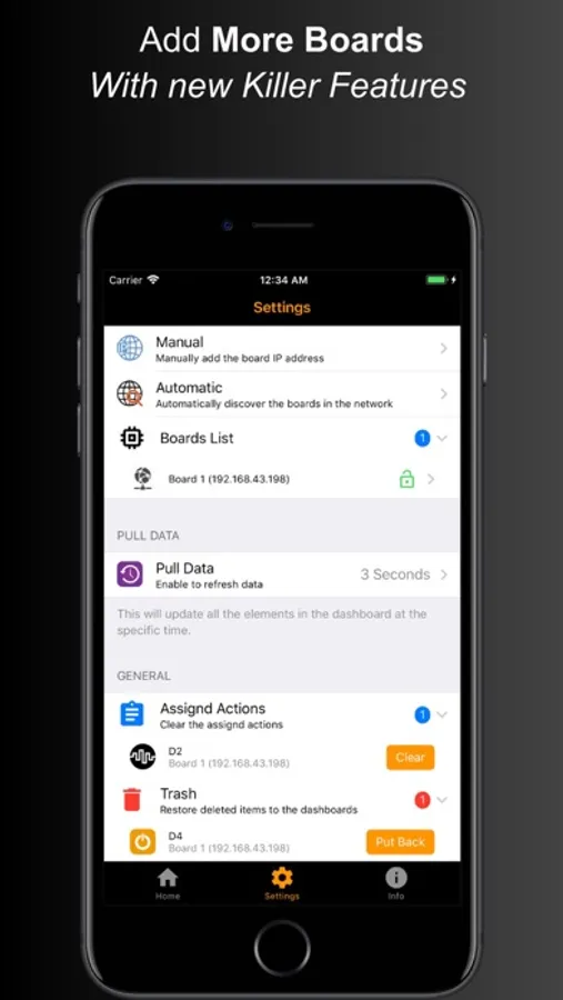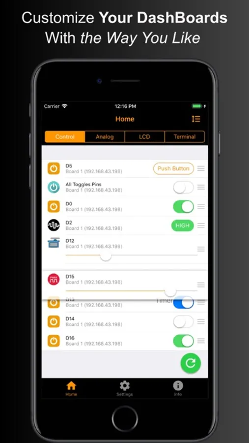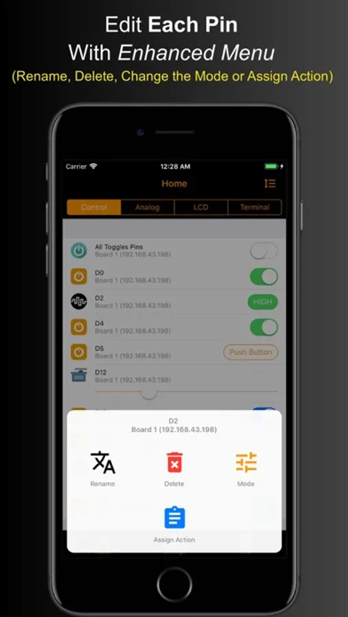 - Change the mode of the pin (Output, SERVO, PWM or INPUT).
