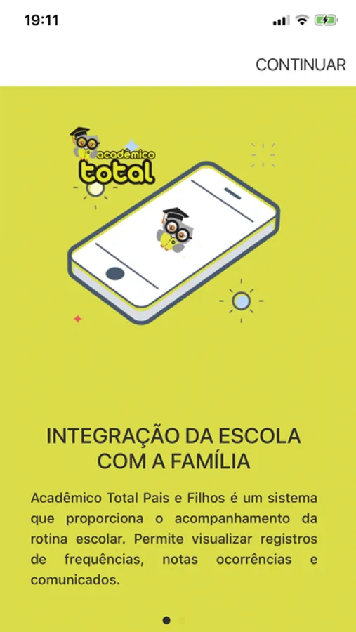 Acadêmico Total Pais e Filhos é um sistema que proporciona o acompanhamento da rotina escolar. Permite visualizar registros de frequências, notas ocorrências e comunicados.