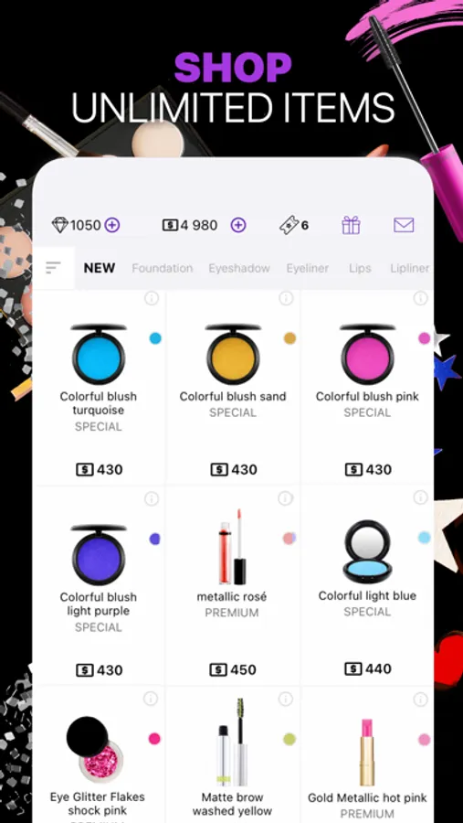 Discover and get creative with thousands of makeup products, styles, accessories, jewelry, and clothing. Get inspired for real-life events by following other creative and talented players.