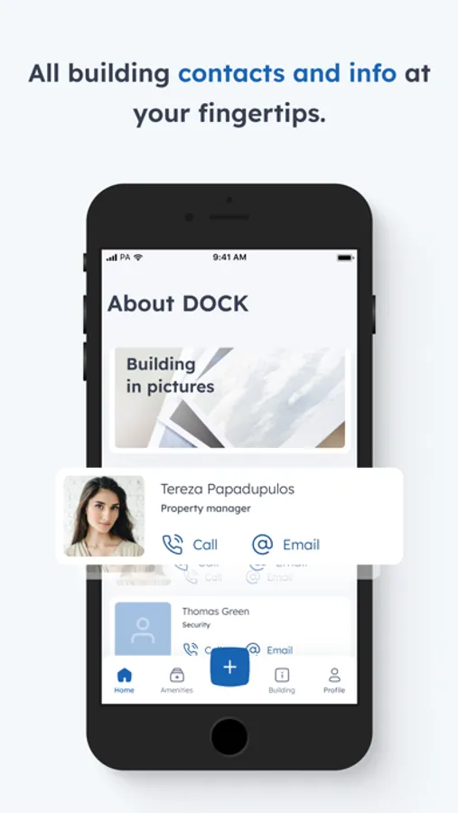 This application is intended not only for employees that work in DOCK but for their visitors as well. Important information about the building is organized on the dashboard, which dynamically changes throughout the day. The app offers more functionality including forums, ability to request maintenance, events, information about companies in the building and about the building itself where you can find important contact, guides and documents.