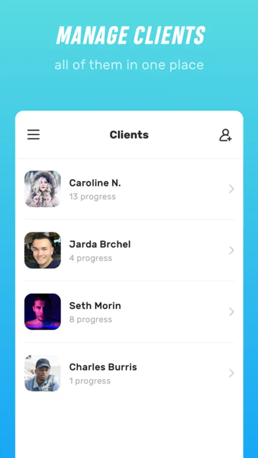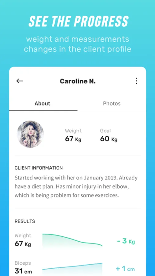 No more emails or messages with measurements, no more mess in your client's data. Make your life easier and have the progress of your clients on one place.
