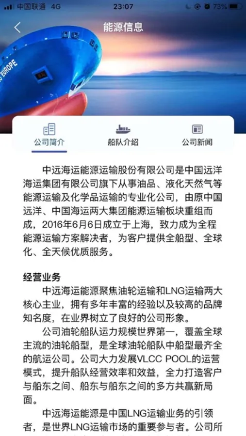 1. 能源信息:介绍公司的企业概况、船队情况以及公司新闻,及时方便的了解公司的发展动态。