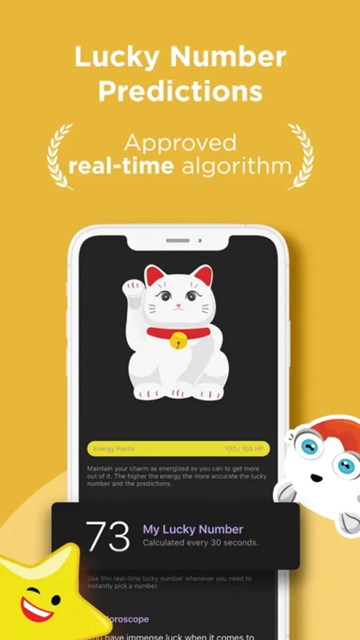 → Your lucky charm will calculate a personalized lucky number using your birth date, alignment of stars and your location! Receive a new lucky number every 30 seconds to make those all-important decisions :)