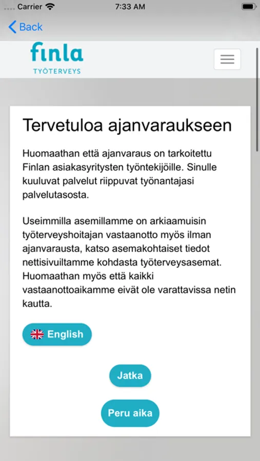 Ajanvaraus ohjaa työntekijän oikean tahon luokse oireiden tai tarvittavien palveluiden perusteella.