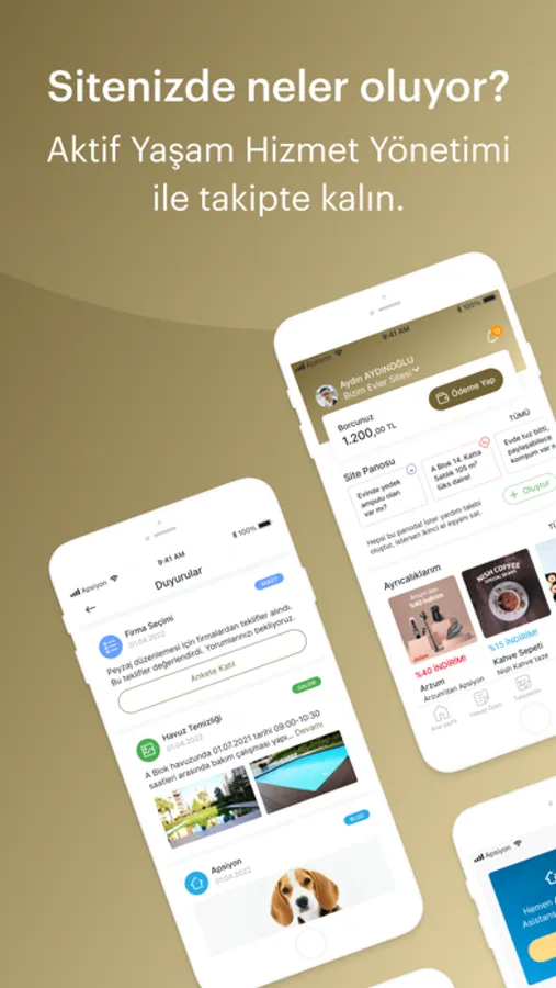 Aktif Yaşam Hizmet Yönetimi, site sakinlerinin yeni asistanı olarak hizmet veren, online bir platformdur. Sitenizin finansal durumundan, site yönetimi ve güvenlik ile iletişim kurmaya kadar her konuda eşsiz bir çözüm sunar.