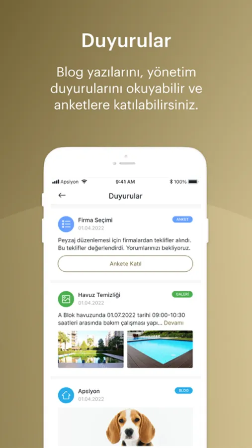 • Anket ve Fotoğraflar: Yönetiminizin sizlerle paylaştığı anketlere katılabilir, paylaşılan fotoğraflara yorum yazabilirsiniz.