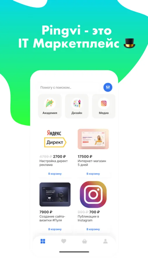 У Пингви можно купить всё: начиная от идеи, заканчивая эксклюзивными креативами с рекламой. Здесь можно и создать сайт, и приложение. Директ, Тарантинг, курсы, все нам под силу