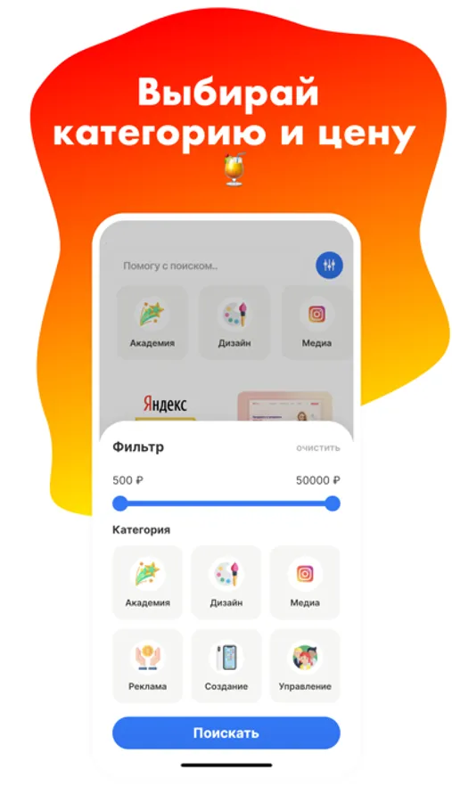 ⁃ Выбирай необходимые услуги, а фильтры всегда помогут найти необходимое по вкусу;