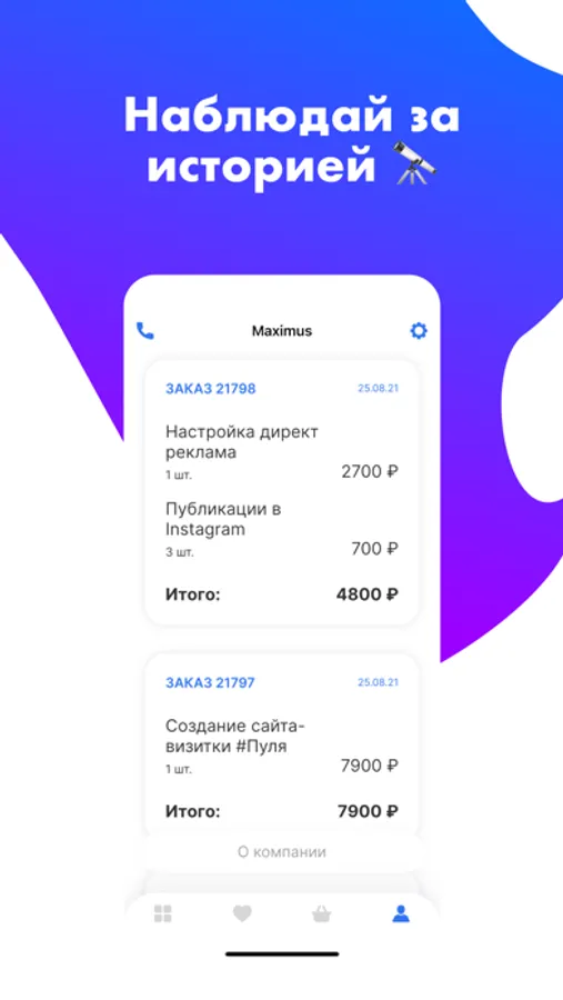 ⁃ Оплата заказа и связь с личным менеджером;