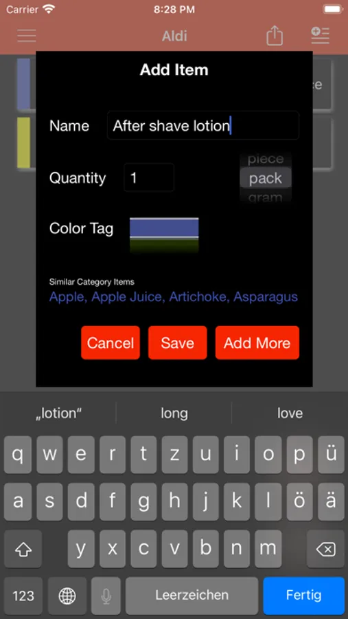 - You can choose color for an item and thus can categorise as per colors. For example, you can choose green color, from the color picker, for vegetables and then all vegetable items will appear together in the list.