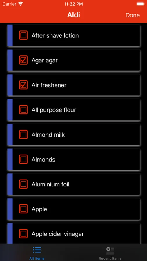 - This app already has more than 300 items to select from. Moreover you can add more items and it remains with you as Recent items. Just you need to select the items either from all items list or from recent list and check/select them to add in a particular shopping list.