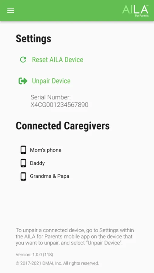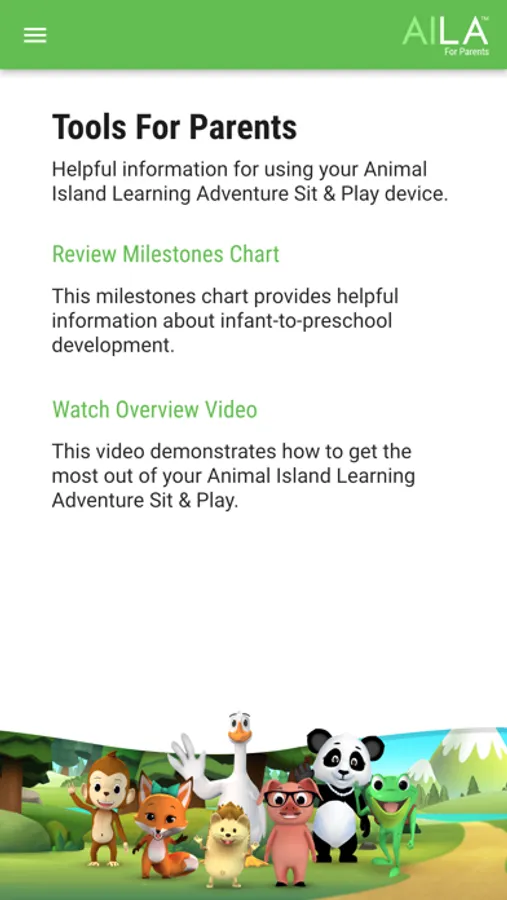 AILA for Parents is a free mobile app for use with an AILA Sit & Play device.