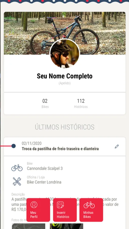 Futuramente ainda haverá a possibilidade de você solicitar a sua oficina que lance as informações de sua manutenção, podendo aprovar ou não esse histórico para que ele seja exibido em sua bicicleta.