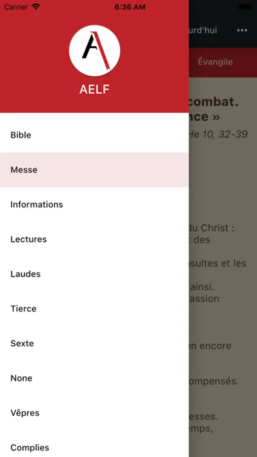 - Application proposée bénévolement, sans aucune publicité avec le soutien de l'Association épiscopale liturgique pour les pays francophones (http://www.aelf.org)
