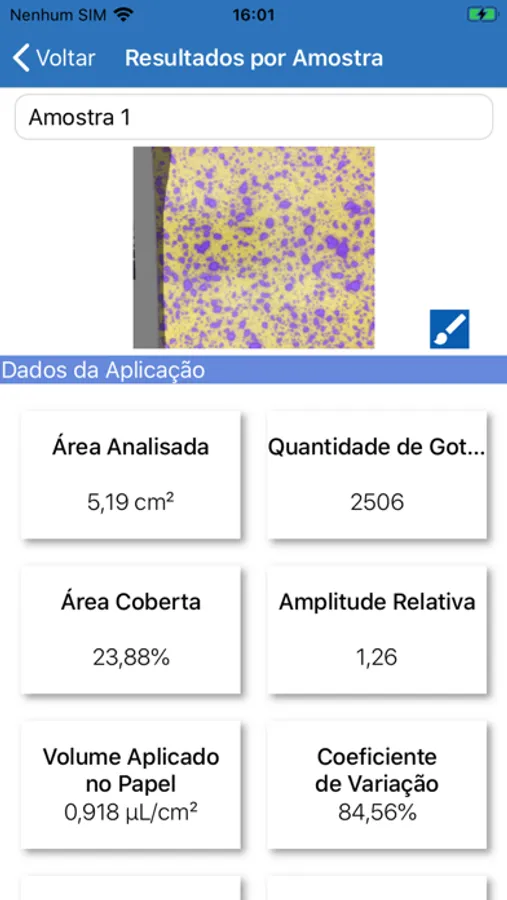 O aplicativo gerencia análises de pulverização e captura imagens de papéis hidrossensíveis através do hardware para medição e contagem de gotas.