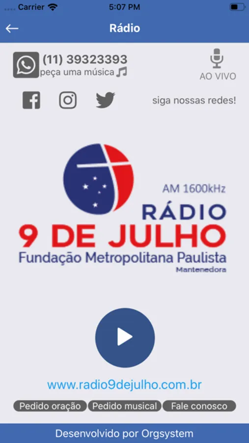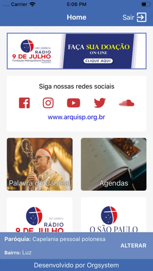 Aplicativo destinado ao publico religioso com noticias, mensagens e agendas, contendo acesso a radio.